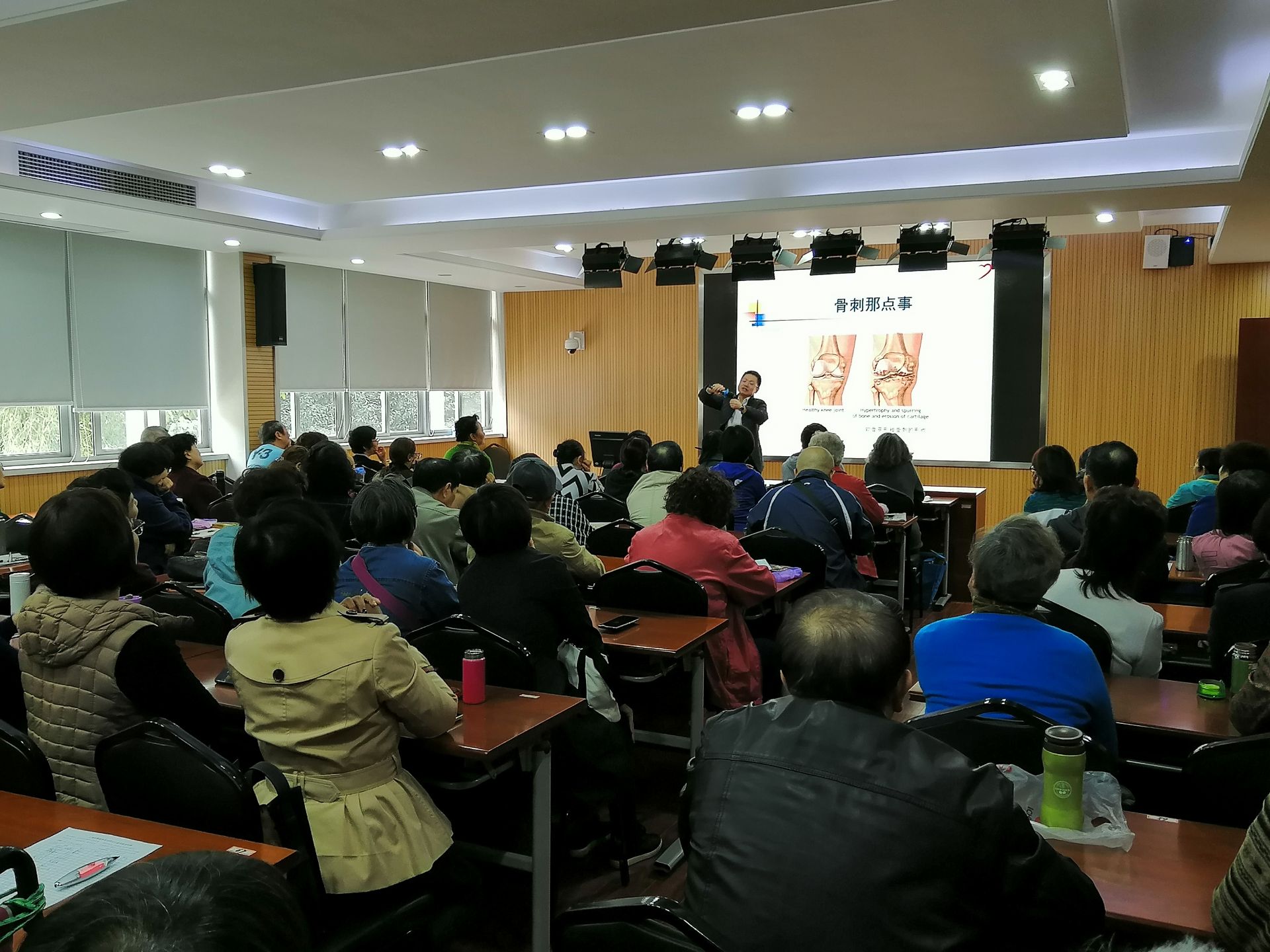 最后,龚医生现场教授了几个“推拿按摩”、“功能锻炼”的保健膝盖的小方法,学员和老师积极互动,学习气氛热烈。龚医生授课风趣、生动形象、实用方便,受到了全体学员的一致好评,同时他的人人都是科普知识的宣传者的理念,也得到了听讲者的高度认同。
